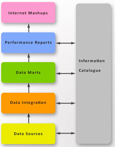 Software Tools linked to the Data Dictionary برمجيات أدوات ربط البيانات القاموس | Clear and reconciled top-down and bottom-up views of data. والتوفيق واضحة من أعلى إلى أسفل القاعدة إلى القمة وجهات النظر من البيانات. | ||