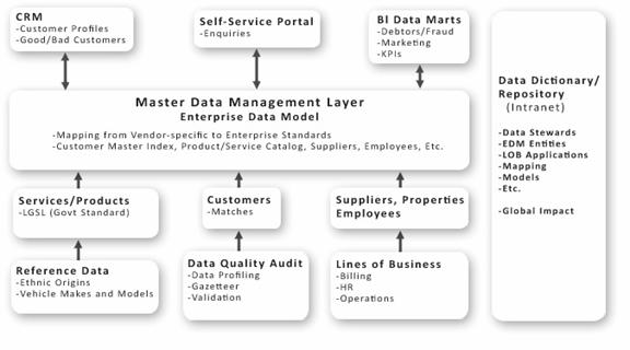 This document describes a Road Map for Enterprise Data Management which covers the important phases from Integration of Data Sources to the production of Integrated Performance Reports, with Business Intelligence. هذه الوثيقة وصفا لخطة خارطة الطريق للمؤسسة لإدارة البيانات والتي تشمل مهمة من مراحل التكامل بين مصادر البيانات المتكاملة لإنتاج تقارير الأداء ، والعمل مع المخابرات.