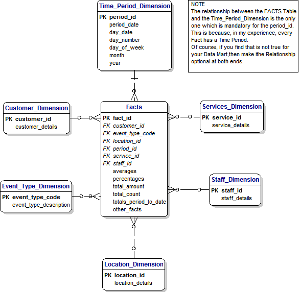 An EVENT TYPE can be associated with zero, one or many CUSTOMER EVENTs .